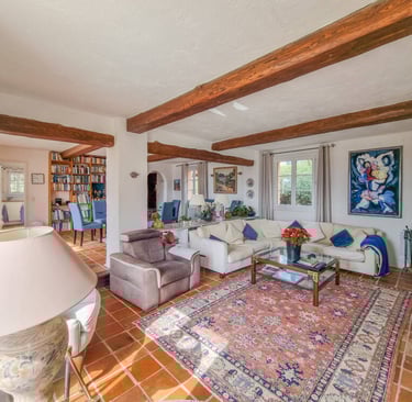 Au cœur d'un domaine calme et verdoyant, découvrez cette magnifique villa orientée plein sud, offrant une vue totalement dégagée et imprenable. La propriété se compose de 4 chambres, d'une belle entrée, et d'un espace de vie généreux comprenant une grande pièce à vivre avec salle à manger, un salon avec insert à bois, et un accès direct à une grande terrasse et à une belle piscine de 12 x 6 m. La villa dispose également d'une cuisine indépendante, de deux salles d'eau, d'une salle de bain, d'un bureau en mezzanine, et deux toilettes. En dépendances, vous trouverez un pool house avec une cuisine d'été, un local technique pour la piscine, ainsi qu'un atelier. Située à proximité des commodités et de l'autoroute A8, cette villa est proposée au prix de 995.000 €. Une opportunité unique pour vivre dans un cadre idyllique.