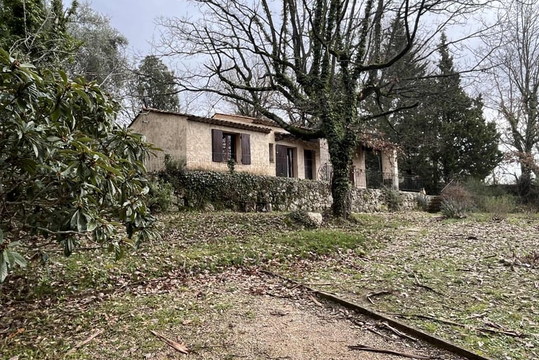 Entrée, cuisine indépendante, dégagement, salon-séjour avec cheminée et plafond cathédrale, Bureau/bibliothèque, 2 chambres, une salle de bains. 1 pièce indépendante attenante servant de remise ou buanderie.