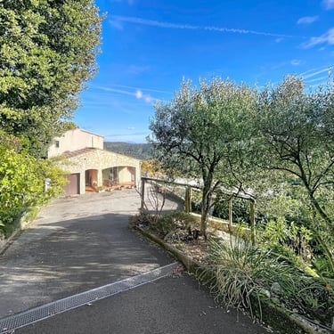 Terrain de 2 460 m² en restanques avec piscine à débordement, cuisine d’été, garage, carport et portail électrique.