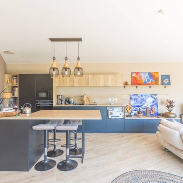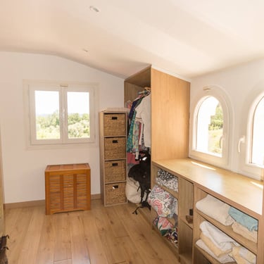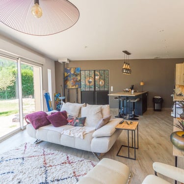 La seconde maison, construite en 2022, aménagée en loft d'environ 59 m², se compose d'un spacieux salon avec cuisine ouverte, d'un espace nuit, d'une salle d'eau et d'un dressing. prix public : 567 000€